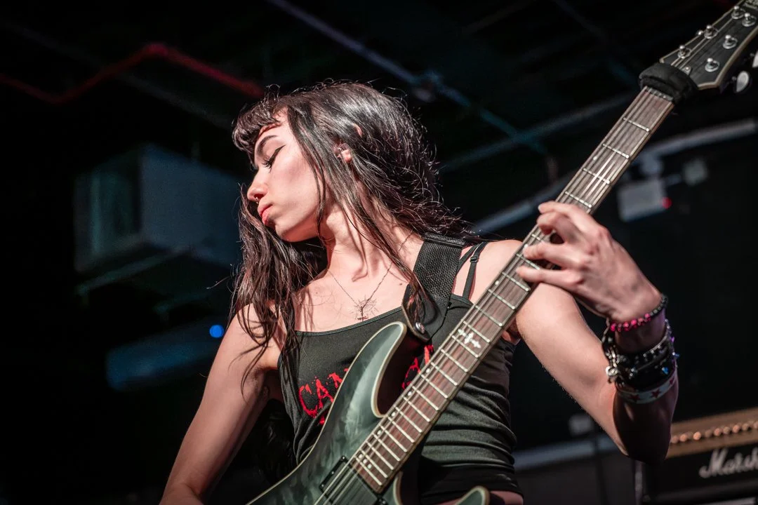 Ash Hernandez is a self-taught guitarist who loves every genre of music from death metal, metalcore, hardcore, deathcore to indie and folk. She utilizes aspects of all in her writing, with major inspirations being The Black Dahlia Murder, Crypta, and Wretched NC. She discovered heavy music at the age of seven through System of a Down and Linkin Park, and began learning how to play guitar in middle school. Ash is the lead songwriter of Diabla, pushing the envelope of music with her thoughtful riffs and artistic song structures.